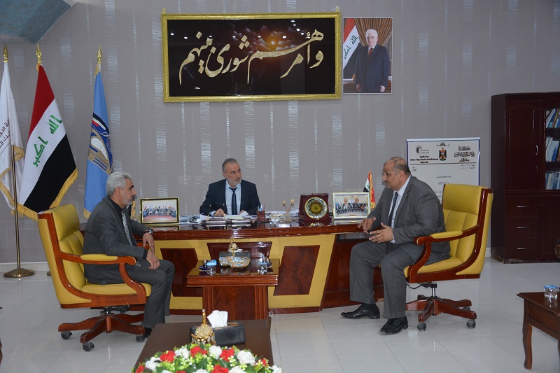 استقبل مساعد رئيس الجامعة للشؤون الادارية الاستاذ الدكتور عامر محمد ابراهيم يرافقه مدير قسم النشاطات الطلابية في جامعة ديالى الدكتور ظاهر غناوي محمد الدكتور حسام المؤمن مدير قسم النشاطات الطلابية التابع لجهاز الاشراف والتقويم العلمي في وزارة التعليم العالي.